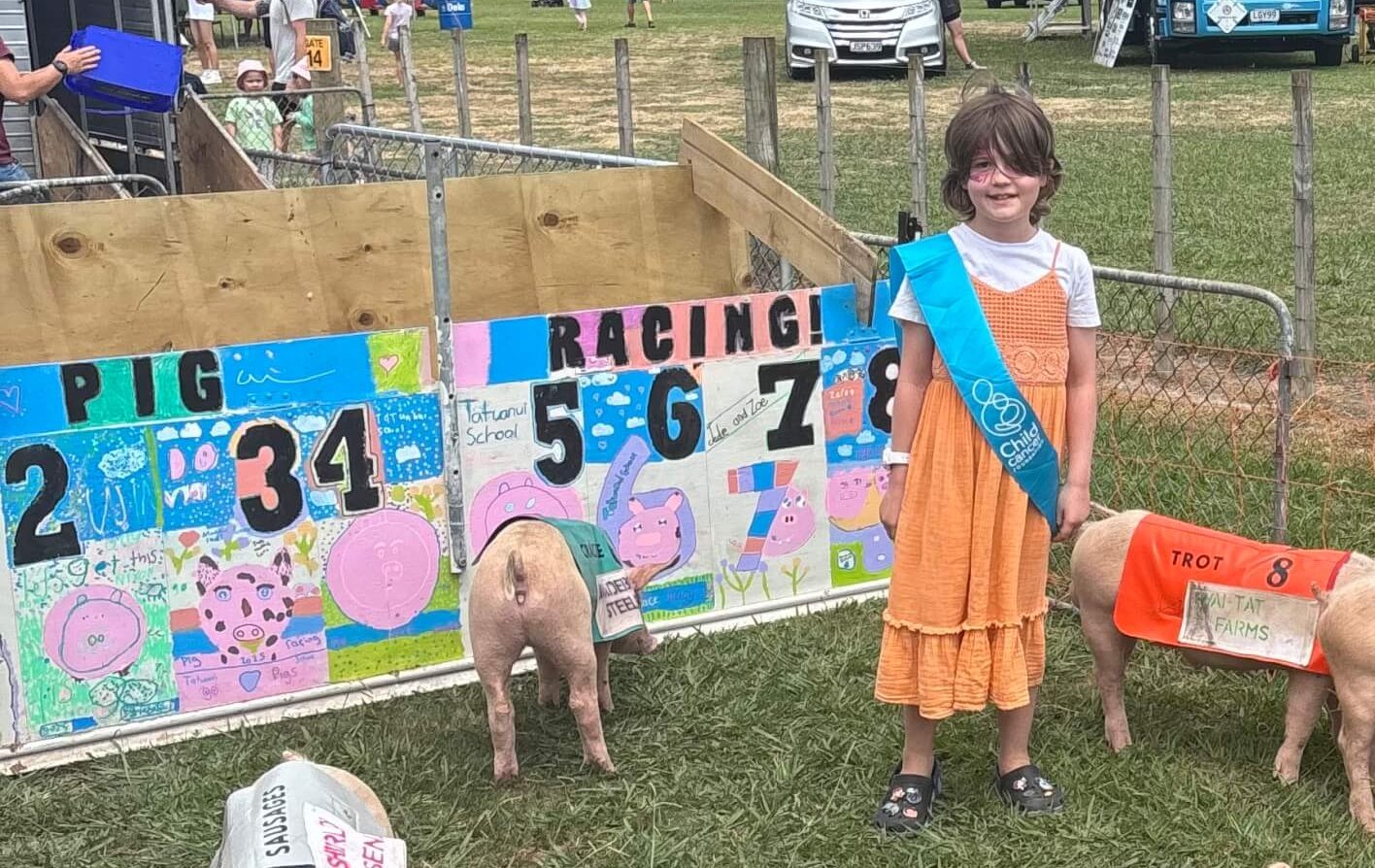 Little piggies compete at the Morrinsville A&P Show to raise funds for children with cancer and their families.