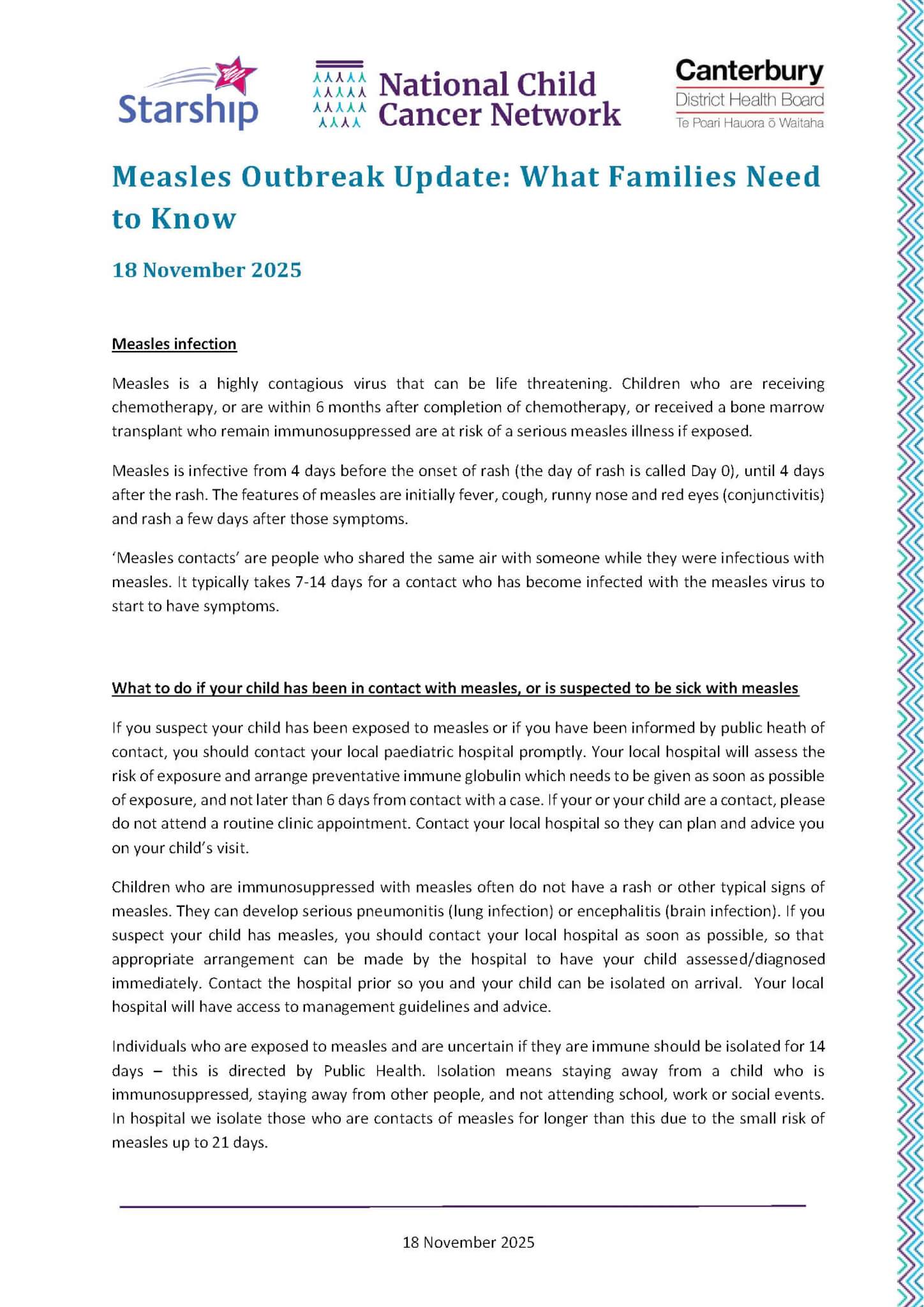 Advice from Starship, National Child Cancer Network and Canterbury District Health Board